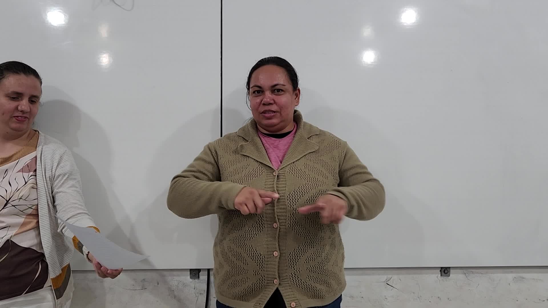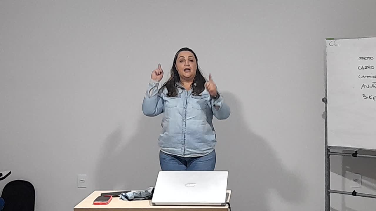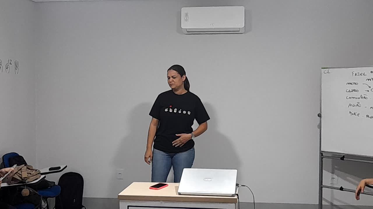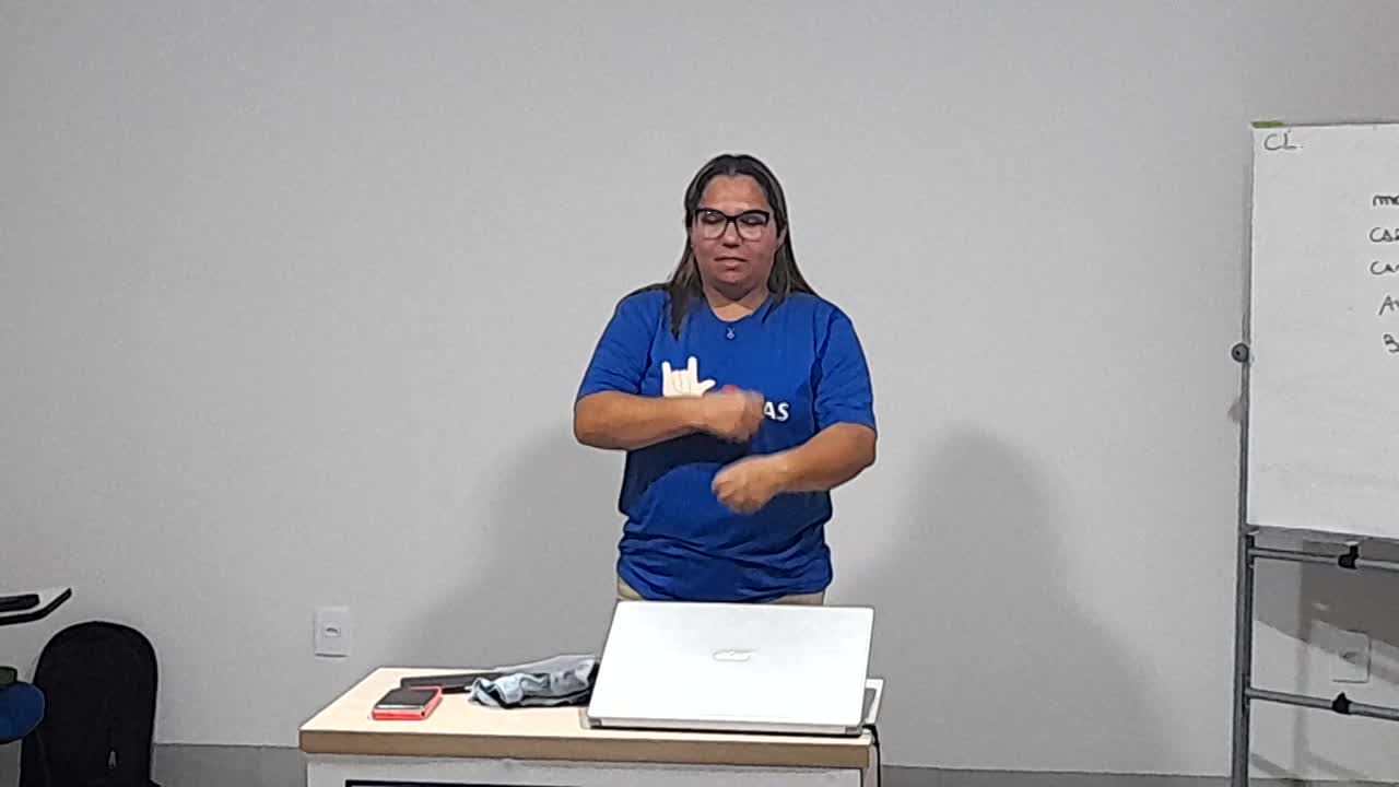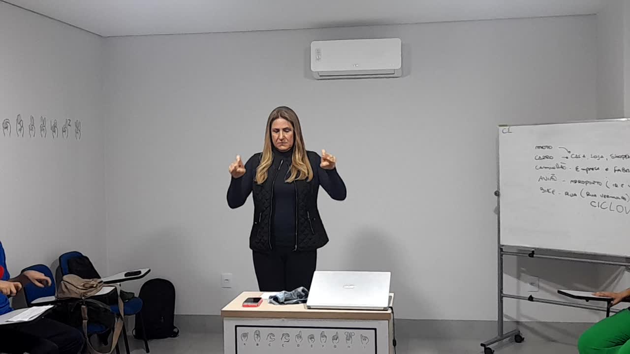 A professora de Libras (Natália) ensinou Libras para alunos ouvintes na sala de aula - 2024 - Turma 1 - Curso de básico I
