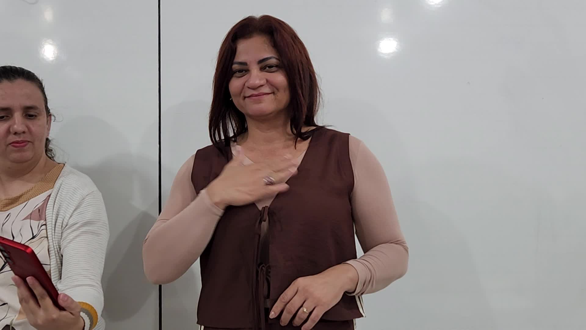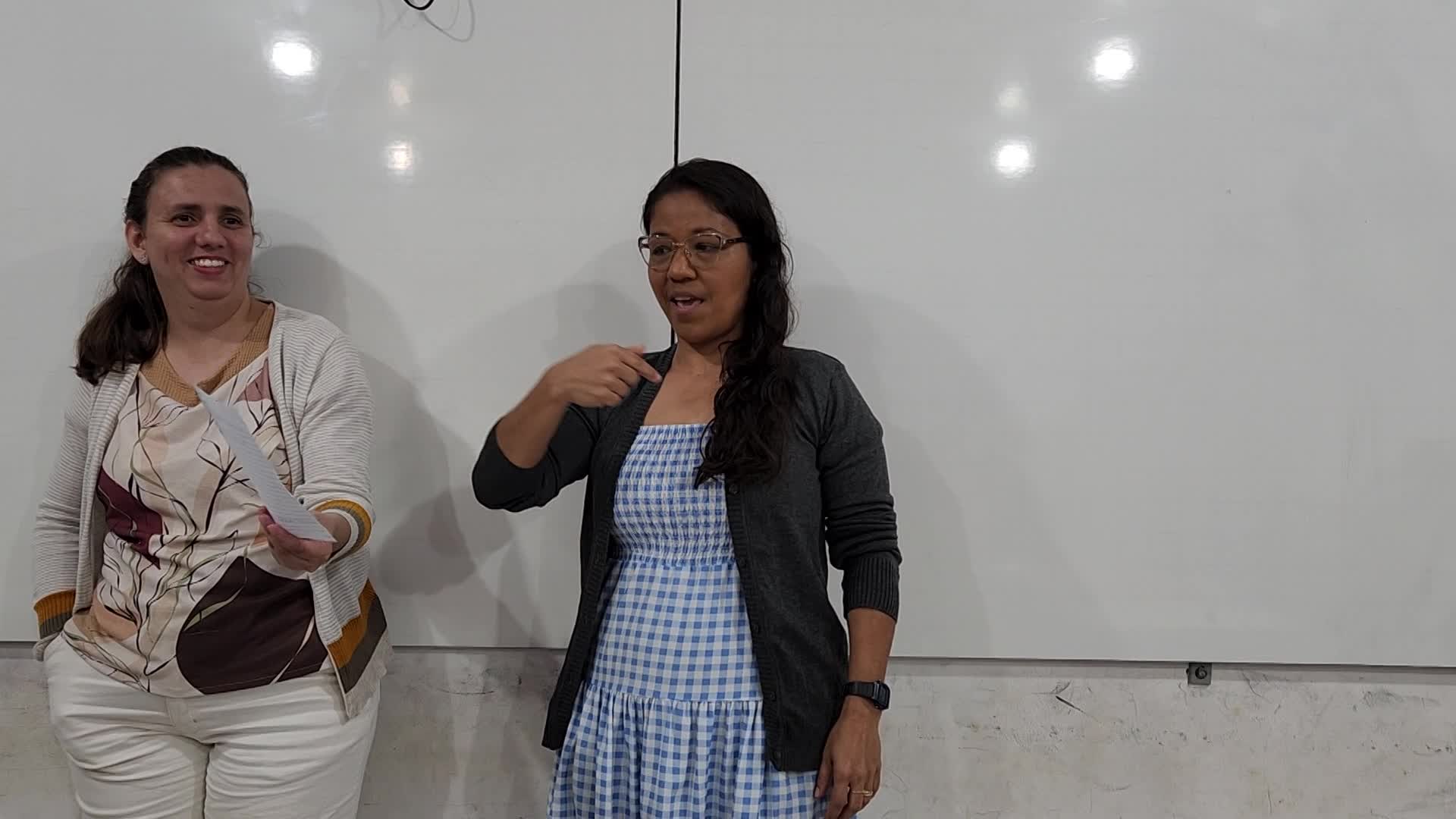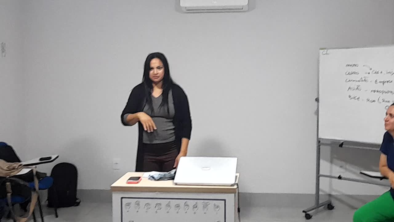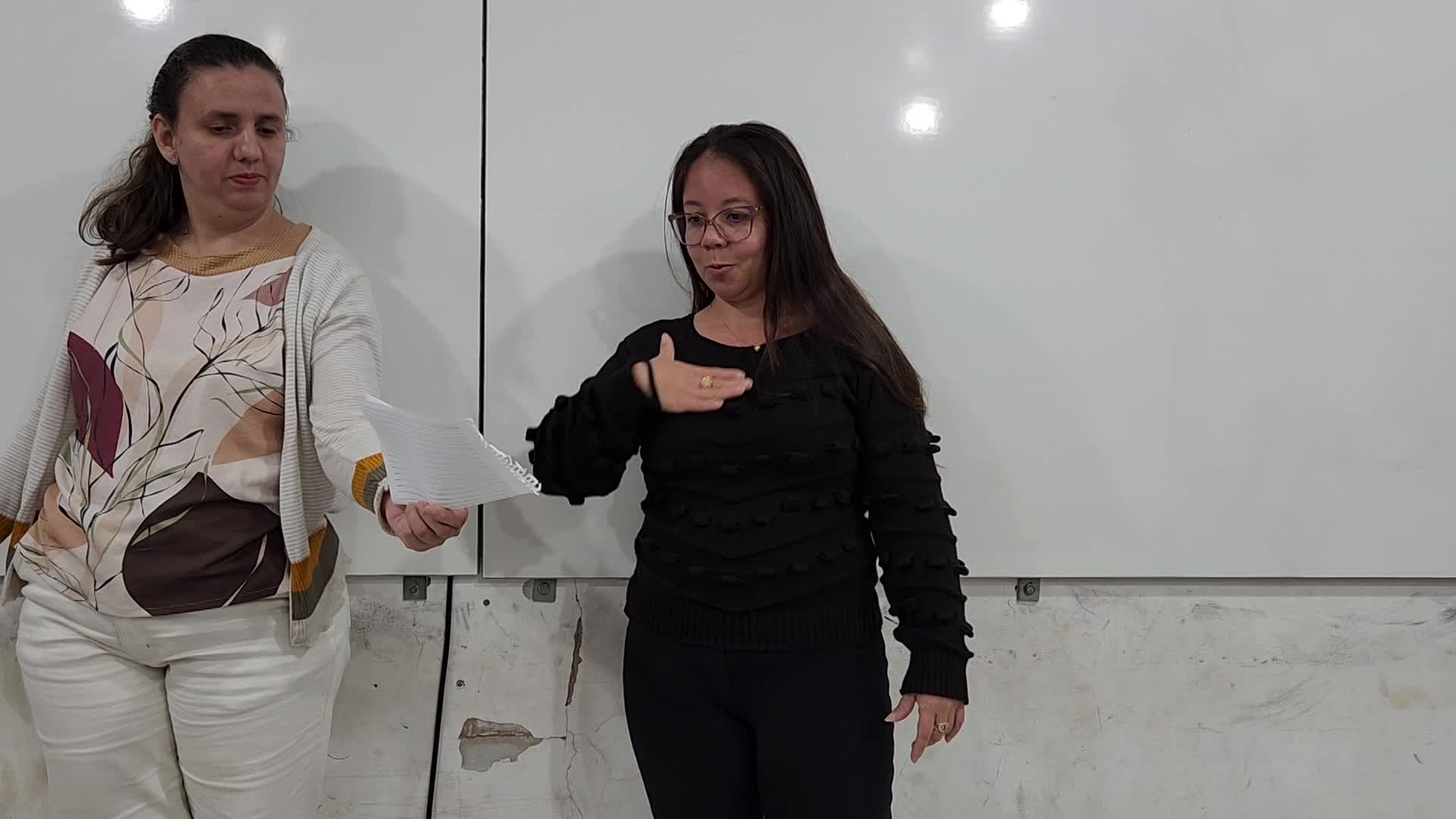 A professora de Libras (Natália) ensinou Libras para alunos ouvintes na sala de aula - 2024 - Turma 1 - Curso de básico I