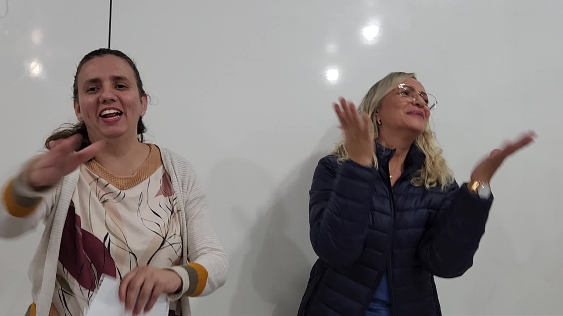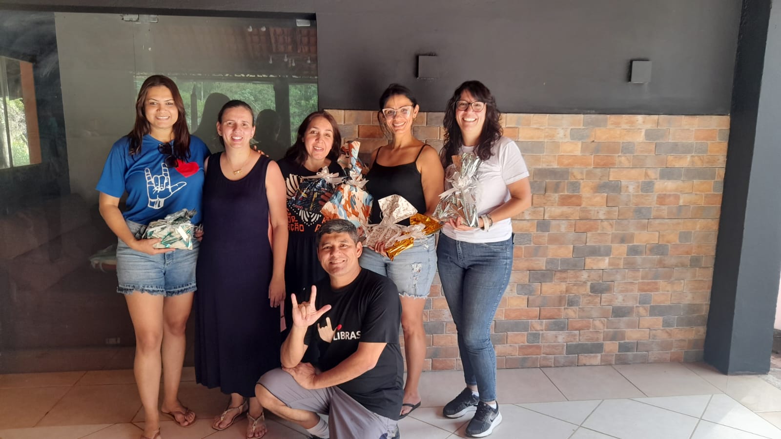 Nós ensinamos Libras para alunos 3 surdos e 2 professoras na sala de aula - 2023 - Turma 3 - Curso de básico I